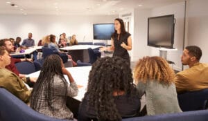 Realização de cursos e palestras para empresas e profissionais individuais sobre ESG e os principais temas relacionados.